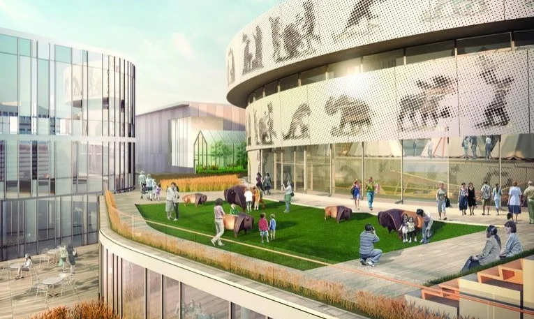 The new Royal Alberta Museum on 103A Avenue and 99th Street is the 40,000 SF replacement to the facility currently located in Glenora which is about half the size. The project was designed by Ledcor and DIALOG at a cost of $376 Million, and will open in the Fall/Winter of 2017.