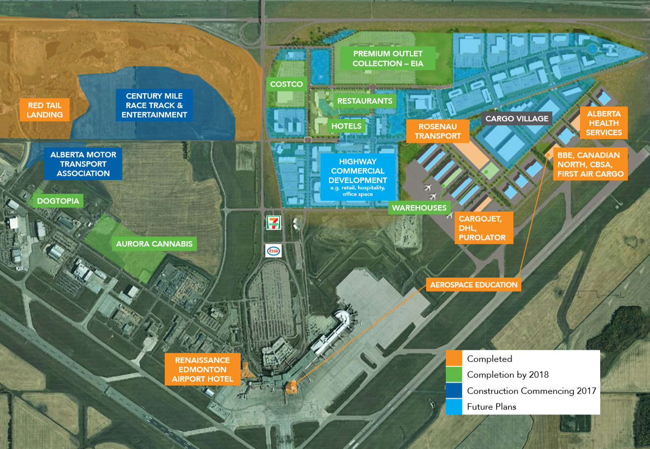 If you've driven past or to the Edmonton International Airport (EIA) lately, you'll likely have noticed that it is a changing and growing landscape. The EIA innovatively came up with a Master Plan for the future of the land surrounding the Airport that involved making available much of the Airport's under-utilized land for the purpose of commercial development by private companies.